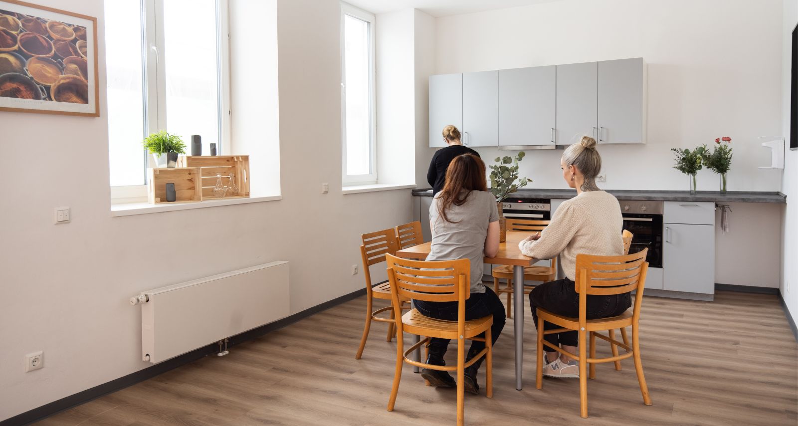 in Wohngemeinschaften (Stadtmitte, aktuell mit ca. 50 Plätzen) oder Einzelappartments (Duisburg-Rheinhausen)