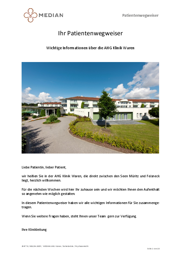 AHG Klinik Waren – Persönlich betreut. Kompetent behandelt. Verlässlich für Sie da.