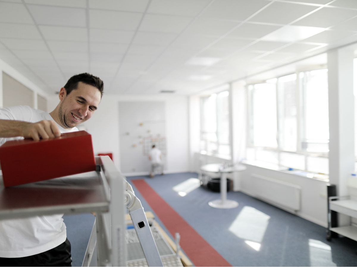 Der Workpark ist ein Raum in dem standardisierte Arbeits und Bewegungsabläufe, sowie Funktionen und Fertigkeiten trainiert werden können. Mit den Patienten werden speziell für ihren Beruf, für ihre Tätigkeit, notwendige Bewegungsabläufe geübt. Das kann z.B. das Steigen auf Leitern sein oder das Gehen auf unebenen Boden gehen. Ebenso werden die Schnelligkeit und die Qualität der Bewegung geschult und beobachtet.