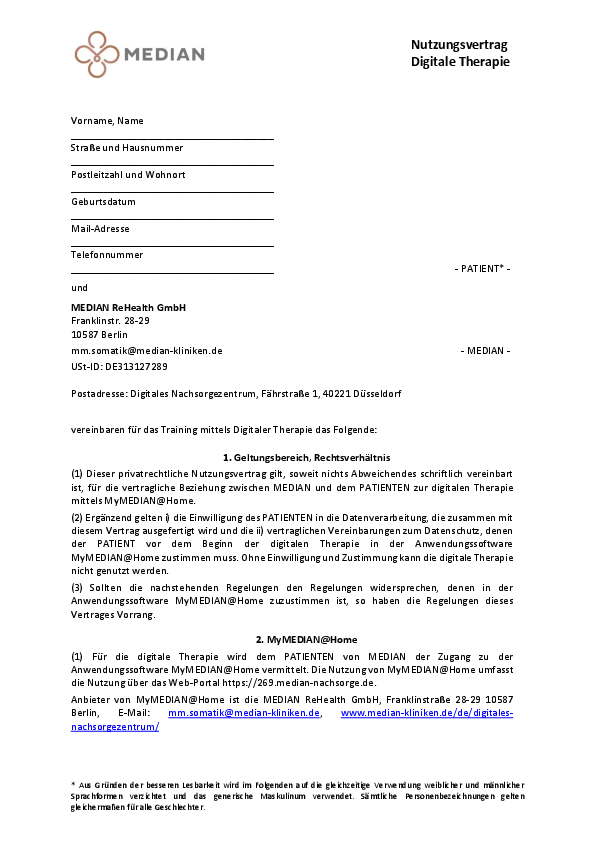 Nutzervertrag für die Digitale Therapie mit MyMEDIAN@Home