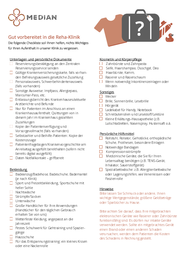 Ihre Checkliste für einen entspannten Start in der Rehaklinik.