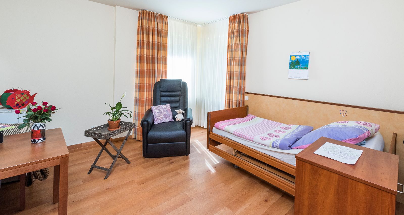 Die Bewohner leben in 30 geräumigen modern ausgestatteten Einzelzimmern nach dem Prinzip einer Hausgemeinschaft in Wohngruppen zusammen. Zwischen 21 m² und 24 m² groß, verfügen die barrierefreien Bewohnerzimmer über einen Vorraum und ein Bad mit Dusche, Toilette und Waschbecken. Die Grundausstattung umfasst Bett mit Nachttisch, Schrank, Tisch mit Stühlen, Notrufanlage und Anschlüsse für TV, Telefon und Internet. Zu jeder Wohngruppe gehören großzügige Gemeinschaftsräume – ein Speiseraum, ein Aufenthaltsraum, eine offene Küche und ein Wäscheraum mit Waschmaschine und Trockner. Selbstverständlich ist jeder Wohngruppe auch ein Mitarbeiterstützpunkt angegliedert und ein großer Südbalkon mit sehr schöner Fernsicht. Das Wohnen im Haus Talblick garantiert genug Platz für die eigene Privatsphäre genauso wie Gelegenheiten und Orte für Begegnungen und Zusammenleben.