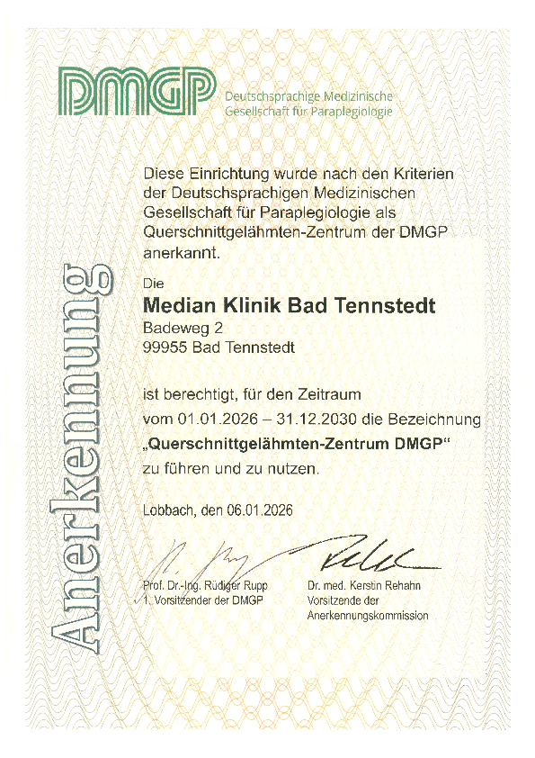 Seit etwa einem Jahr wird das ReWalk-Exoskelett im Querschnittgelähmten-Zentrum der MEDIAN Klinik Bad Tennstedt bei inkompletten und kompletten Paraplegikern eingesetzt. Das akkubetriebene, robotergestützte Gehtraining unterstützt Hüft- und Kniebewegungen, sodass die Anwender an Stützen aufrecht stehen, gehen und Treppen bewältigen können. Durch leichte Gewichtsverlagerungen werden die Schritte ausgelöst, wodurch ein selbstbestimmtes, kontrolliertes Gehen möglich wird. Regelmäßiges Training verbessert nicht nur Koordination und Kondition, sondern kann auch Blasen- und Darmfunktion sowie Sensibilität positiv beeinflussen.