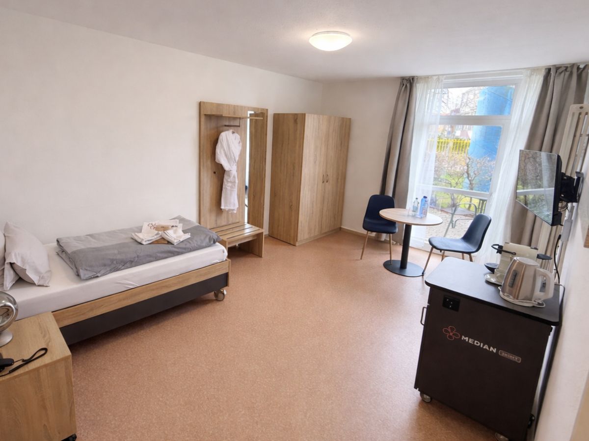 - Inklusive: WLAN, Trinkflasche, MEDIAN Beutel, Cafeteria-Gutschein zur Begrüßung