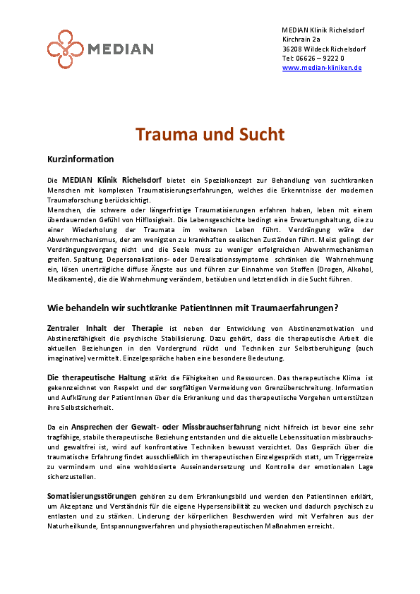 Hier finden Sie Informationsmaterial über unsere Klinik, die Behandlung und zur Ausbildung zum „Sozialen Ansprechpartner im Betrieb für Sucht und Psychosomatik“.