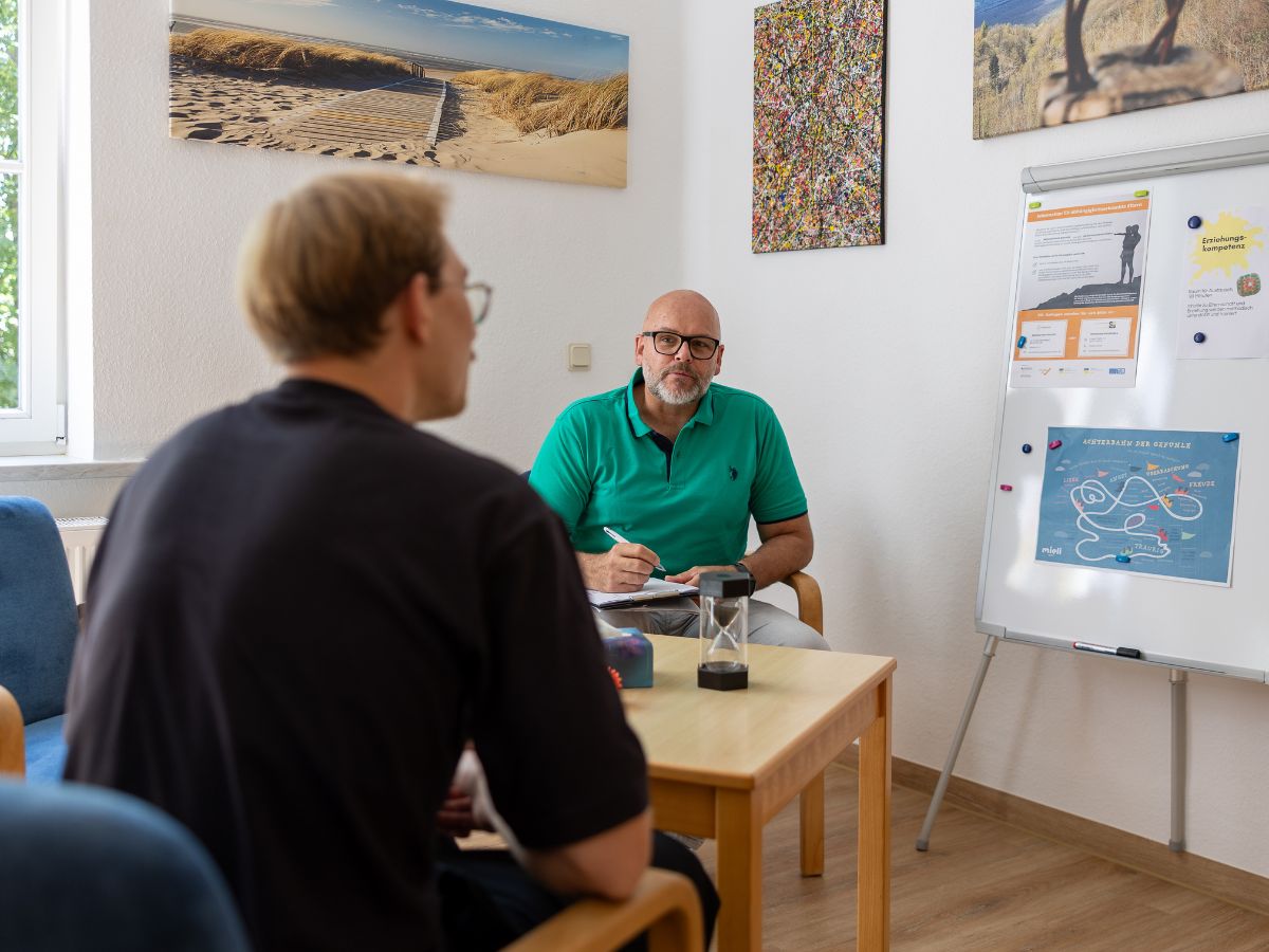Im Mittelpunkt der Behandlung stehen Sie als Patient gemeinsam mit Ihrem Bezugstherapeuten und Bezugsarzt. Unterstützt werden Sie von vielen weiteren Mitarbeitenden – etwa aus Pflege, Sport-, Arbeits-, Physio- und Freizeittherapie sowie aus Verwaltung, Küche, Hauswirtschaft, Technik und Reinigung.