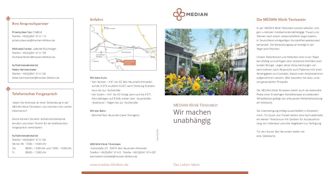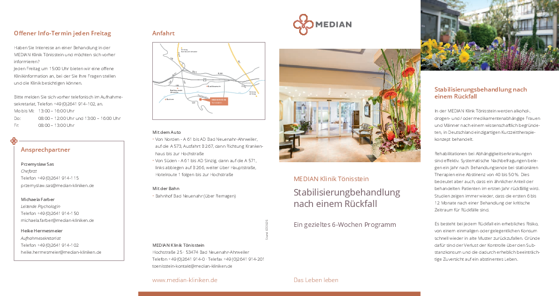 Entdecken Sie unser Informationsmaterial zu unser Einrichtung, unseren Behandlungsangeboten und Krankheitsbildern. Laden Sie die Flyer und Broschüren einfach herunterund starten Sie bestens informiert in Ihre Rehabilitation bei uns in Bad Neuenahr.