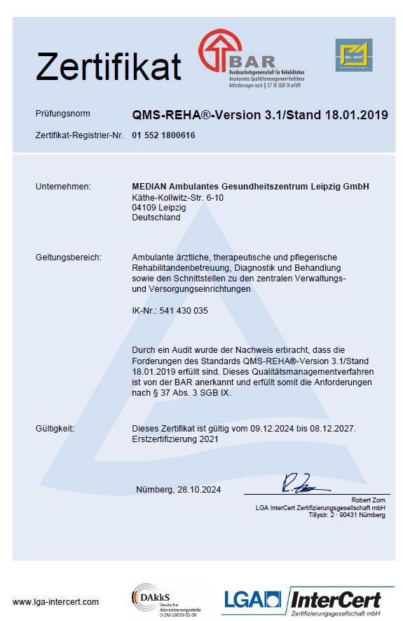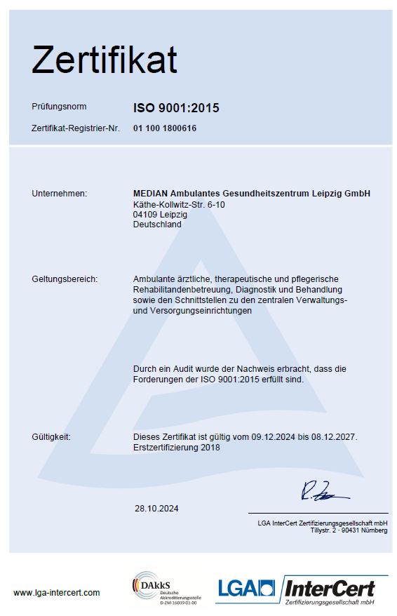 Qualitätsnachweise und Zertifikate im MEDIAN Ambulantes Gesundheitszentrum Leipzig