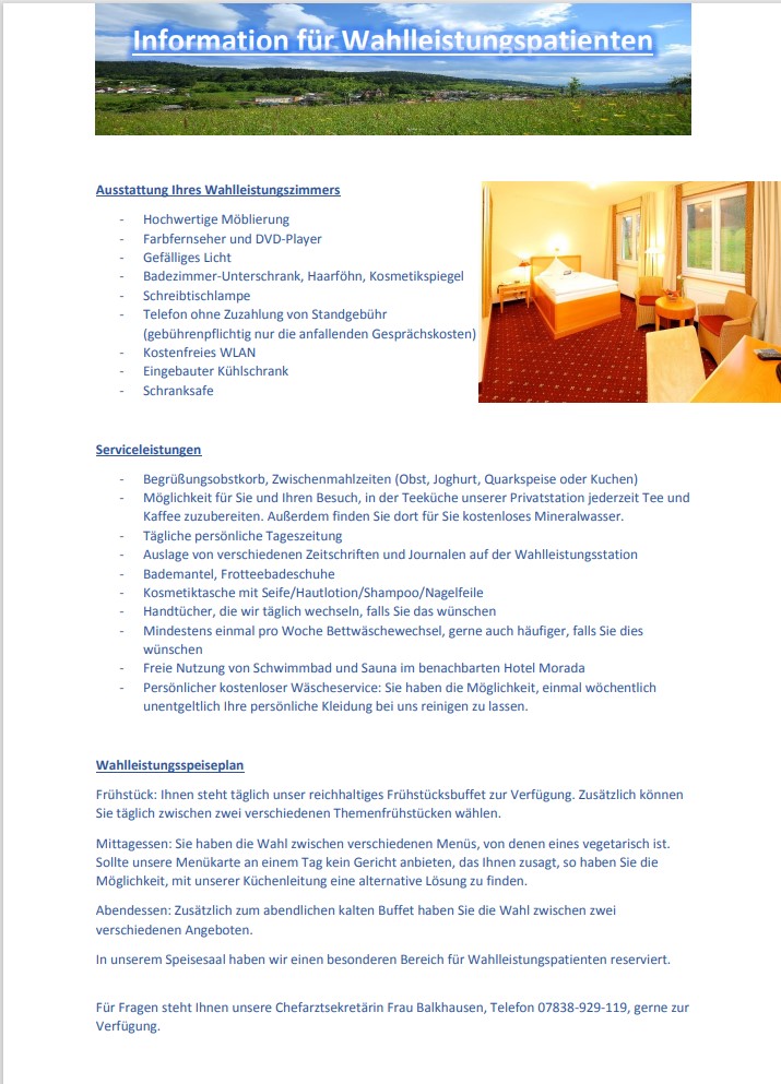 Informationen zu unsere Wahlleistunsgangeboten für Privatpatienten und Selbstzahler