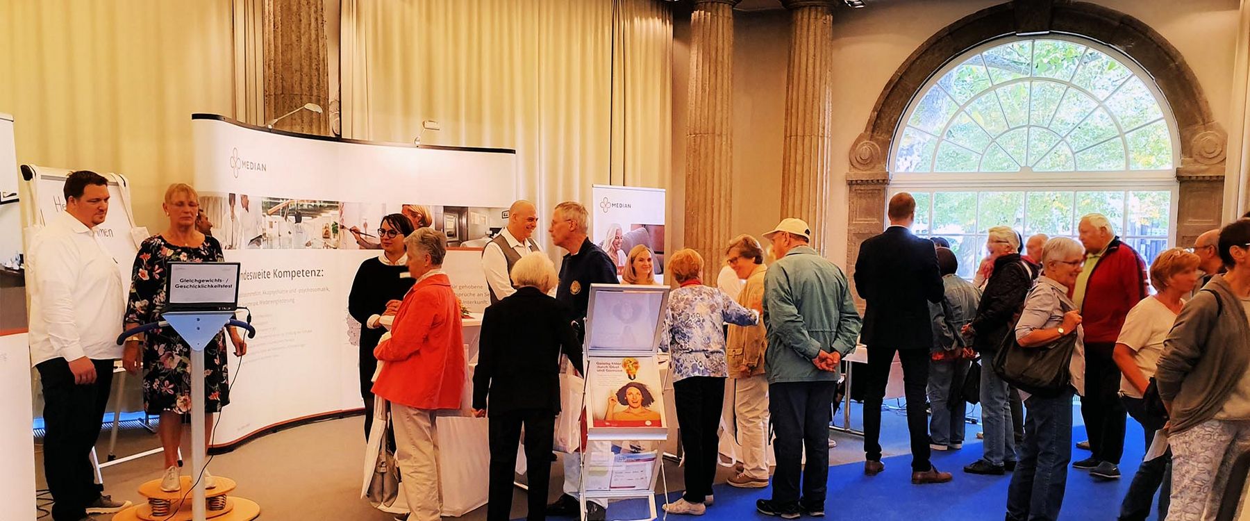 Gemeinsam mit anderen ortsansässigen Kliniken, Vereinen, Fitnessstudios und Selbsthilfegruppen boten die beiden MEDIAN Kliniken eine Vielzahl an Informationen und spannende Aktionen rund um das Thema Gesundheit und deren Erhaltung. Die Klinik am Südpark führte rund 176 ABI-Messungen zur Früherkennung des Herzinfarktrisikos durch. Im anschließenden Gespräch mit dem Arzt der kardiologischen Abteilung, Herr Nemanja Canic, konnten die Messebesucher die Ergebnisse erörtern und erhielten Informationen und Tipps. Einer Gleichgewichtstestung konnten sich interessierte Besucher bei dem Leiter der physiotherapeutischen Abteilung der Kaiserberg-Klinik, Herr Stefan Dreher unterziehen. Auch dieses Angebot fand regen Anklang. Die Mitarbeiter der Ernährungsberatung, unter der Leitung von Frau Tina Günther (Diabetesberaterin DDG), offerierten ihre selbst hergestellten, vollwertigen und gesunde Häppchen in Form von Haferkeksen und Müsliriegel und kamen mit dem Nachlegen gar nicht nach. Im Rahmen eines Fachvortrages zum Thema „Schmerztherapiekonzepte in der Inneren Medizin (Rehabilitation)“ konnte der kardiologische Chefarzt Herr Dr. med. Bernd Friederichs eine große Anzahl begeisterter Besucher informieren. Rundum eine gelungene Veranstaltung für die Bevölkerung der Region, die im Jahr 2021 ihre Fortsetzung erfahren wird.