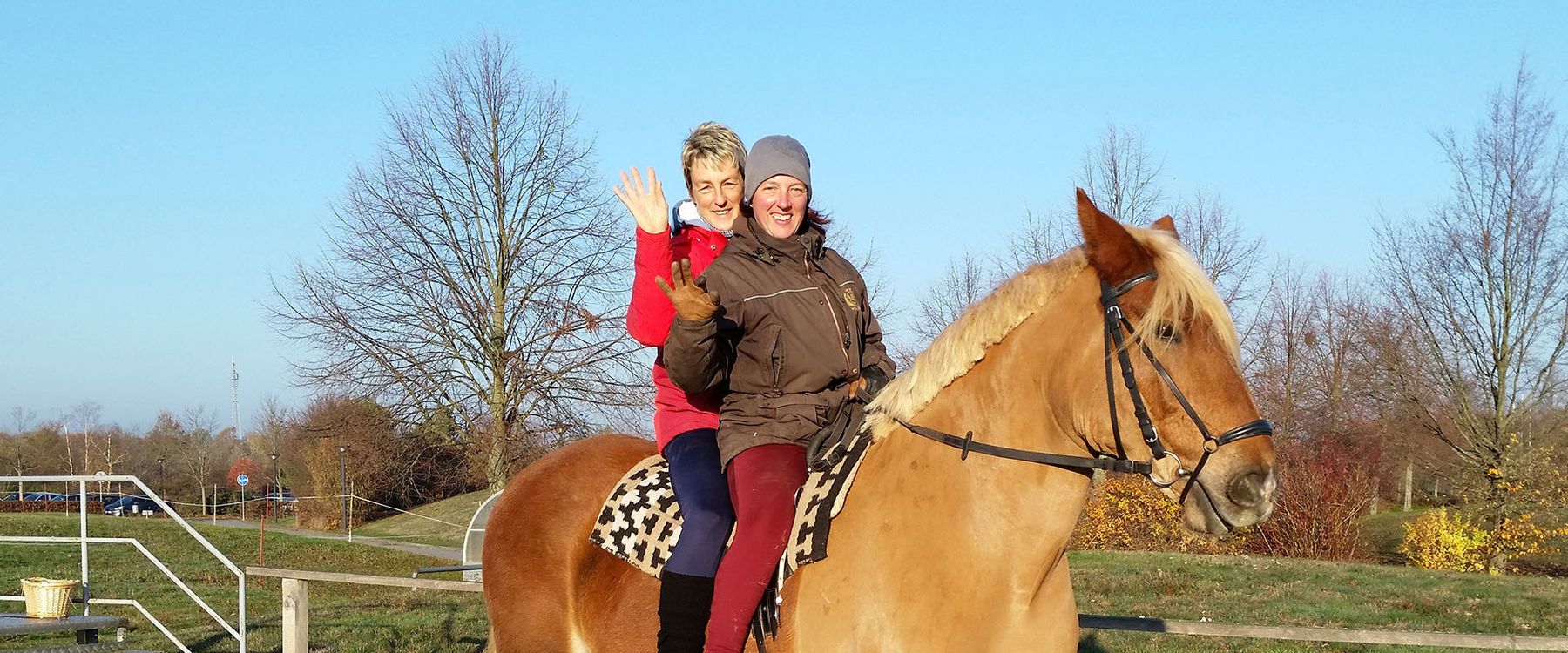 Zwei Kleinferde im Einsatz ergänzen unser Pferdeteam und sorgen für Abwechslung. Sie werden vorrangig für leichtere Patienten eingesetzt. Ihre Schrittfrequenz ist ganz verschieden im Gegensatz zu ihren großen Kollegen. Die niedrigere Rückenhöhe gibt erst einmal etwas Mut bei unsicheren Patienten.