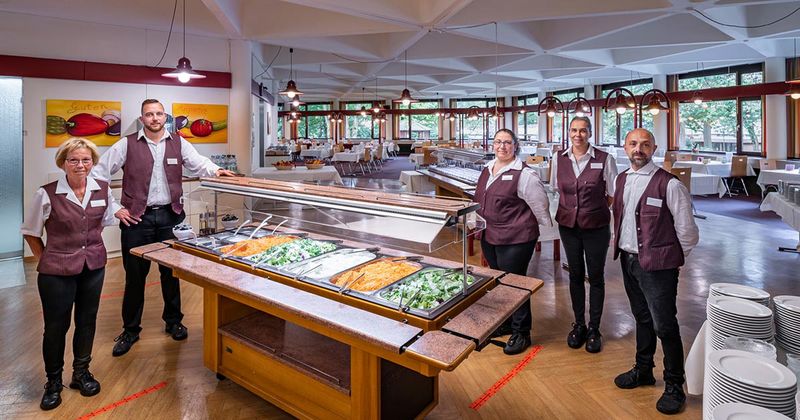 Wählen Sie einfach aus drei Hauptgerichten Ihr Mittagessen. Das Mittagessen wird entsprechend Ihrer Kostform am Tisch serviert. Das reichhaltige Frühstücks- und Abendessen erhalten Sie in Büffetform. Die Büffets beinhalten einen Vollkost sowie einen fettarmen Bereich.