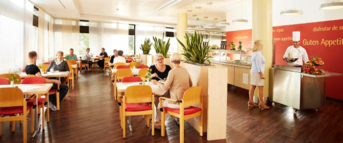 Unser Küchenleiter und sein Team legen besonderen Wert auf eine ausgewogene und gesunde Ernährung. Eine auf die spezifischen Bedürfnisse ausgerichtete Kost steht unseren Patienten neben anderen individuell wählbaren Komponenten zur Verfügung. Die frische Zubereitung der Speisen vor Ort ist dabei genauso wichtig wie die sorgfältige Prüfung und Auswahl der häufig regionalen Lieferanten. Frühstück und Abendessen werden in Buffetform im Patienten-Restaurant angeboten. Zum Mittag bieten wir unseren Patienten drei Menüs (Vollkost-, Reduktionskost und vergetarische Kost) an, aus denen Sie frei wählen dürfen. Zu allen drei Mahlzeiten reichen wir frisches Obst, Gemüse und Rohkost.