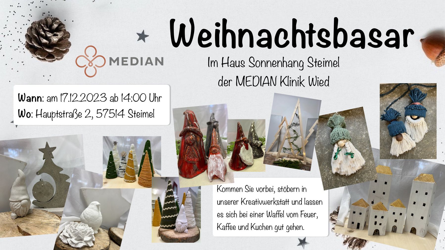 Am Sonntag, den 17.12.2023 ab 14:00 Uhr lädt die ergotherapeutische Abteilung gemeinsam mit den Patienten und Patientinnen der MEDAIN Klinik Wied herzlich zum Adventsbasar ins Haus Sonnenhang in der Hauptstraße 2 in Steimel ein.