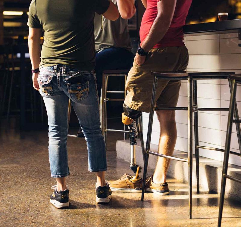 Eine wichtige Vorbereitung auf den Alltag ist das Hilfsmitteltraining. Patienten erlernen beispielsweise den Umgang mit ihrer Prothese durch unser therapeutisches Team im Fachbereich Orthopädie. Durch die enge Zusammenarbeit mit Orthopädietechnikern können während, aber auch nach dem Reha-Aufenthalt in der MEDIAN Klinik Wilhelmshaven Anpassungen und Verbesserungen vorgenommen werden.