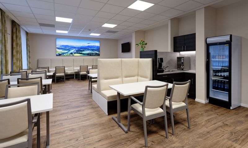 Die Lounge bietet einen separaten und eleganten Rückzugsort speziell für die Patienten unserer premium Station. Hier können Sie sich zum Frühstück und Abendessen aus einem vielfältigen Buffett bedienen. Zum Mittagstisch haben Sie die Auswahl zwischen fünf Menüs, die Ihnen an den Platz serviert werden.
