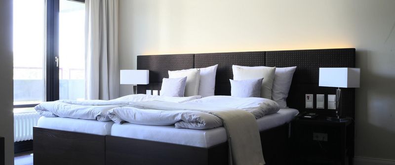 Genießen Sie komfortables Wohnen im Komfort Doppelzimmer mit Balkon. Erfreuen Sie sich am grünen Ausblick in den Kurpark.
