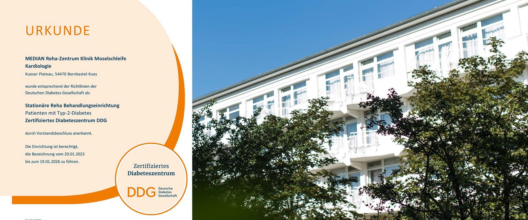 Diabetes ist in Deutschland eine weit verbreitete „Volkskrankheit“, von der mehr als sechs Millionen Menschen betroffen sind. Um eine qualitativ hochwertige Versorgung der Patientinnen und Patienten zu gewährleisten, zertifiziert die Deutsche Diabetes Gesellschaft (DDG) Einrichtungen, die hohe definierte Anforderungen bei der Behandlung erfüllen: Zu diesen Einrichtungen mit ausgezeichneter Behandlungsqualität zählt die kardiologische Abteilung der Klinik Moselschleife im MEDIAN Reha-Zentrum Bernkastel-Kues, die kürzlich von der DDG als Diabeteszentrum zertifiziert wurde.