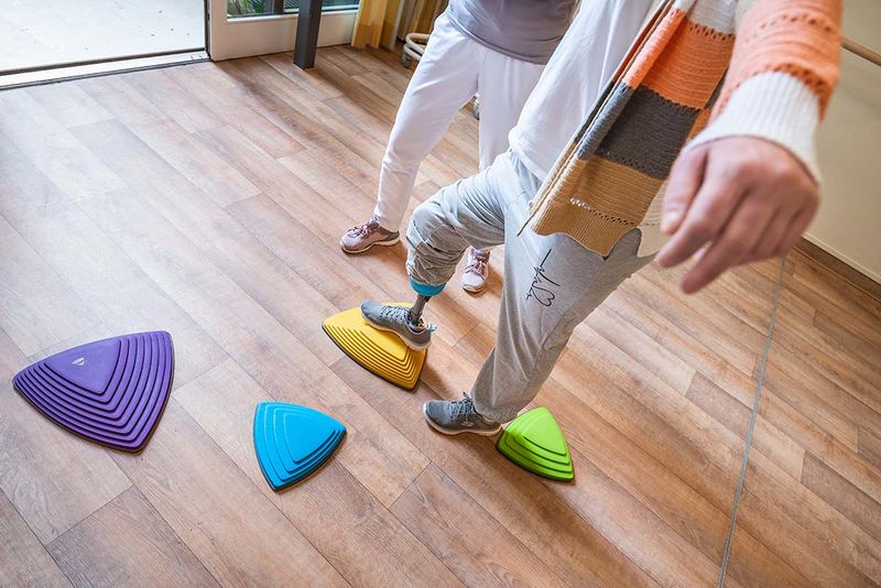 Bei Amputationen im Bereich des Unterschenkels und Kniegelenkes erfolgt zunächst die Mobilisation mit einer wiederverwendbaren, pneumatischen Übungsprothese.