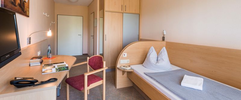 Unsere Klinik verfügt über 194 Betten. Unsere Patienten wohnen in komfortablen Einzelzimmern mit Dusche, Telefon und Kabel-TV. Die meisten Zimmer haben einen Balkon. Teilweise verfügen die Zimmer über einen Weitblick ins Tal. Bei Bedarf ist es möglich, ein Zustellbett für Begleitpersonen aufzustellen. Wir verfügen über sieben behindertengerecht ausgestattete Zimmer.