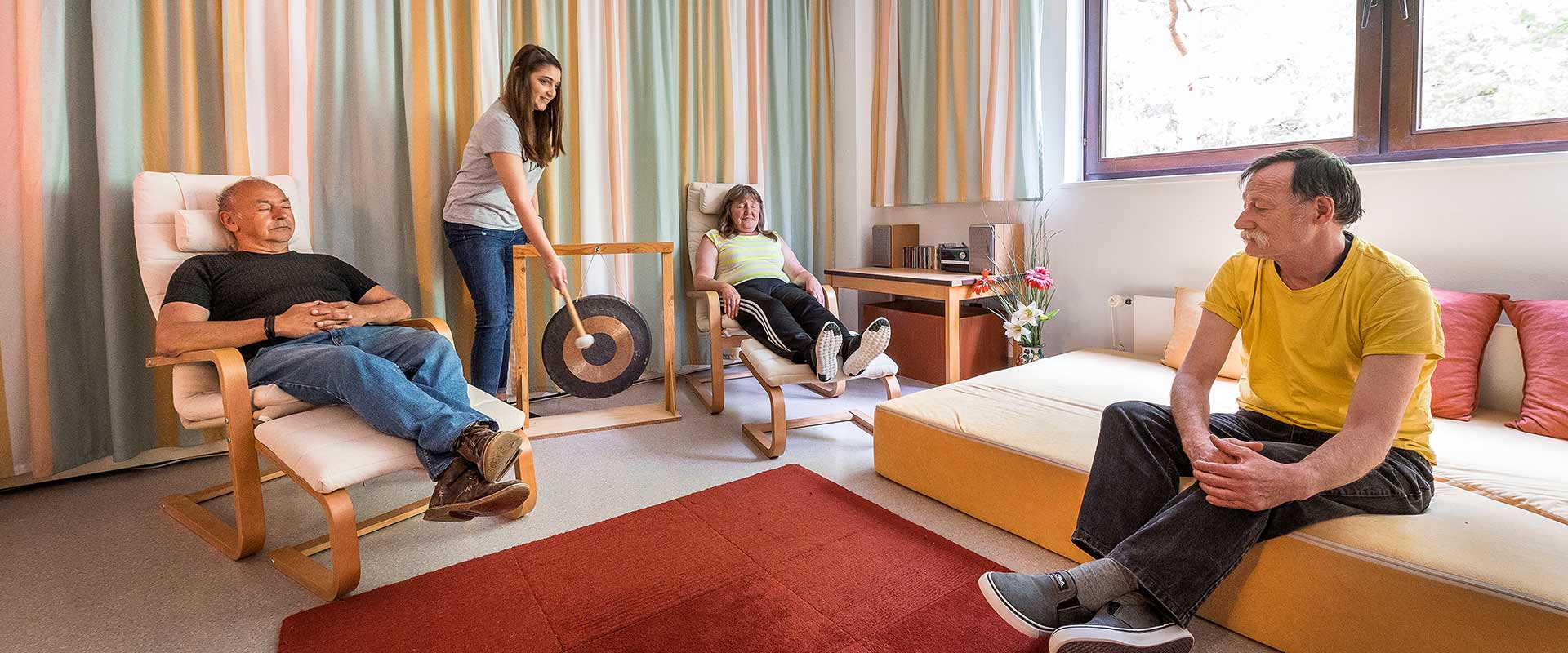 Hierzu zählt ganz zentral die professionelle Rückfall-Prävention, die alle Lebensbereiche betrifft. Unterstützend erfolgen Kontrollen für Alkohol, Sucht-Medikamente und Drogen. Flankierend kommen Angebote wie Genusstraining, Entspannungstherapie, Deeskalationstraining und Training sozialer Kompetenzen zum Einsatz.