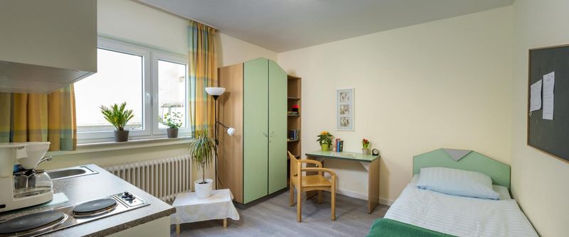 Ansprechend eingerichtet sind die Zimmer der Bewohner. Je nach Wunsch können die Räume individuell gestaltet werden und es ist sogar möglich, einzelne eigene Möbelstücke mitzubringen. Auf diese Weise entsteht ein Stück Privatsphäre als sicherer Rückzugsraum. Jedes Zimmer verfügt zusätzlich über ein Fernsehgerät. Die Ausstattung des Hauses umfasst darüber hinaus mehrere Gemeinschaftsräume:
