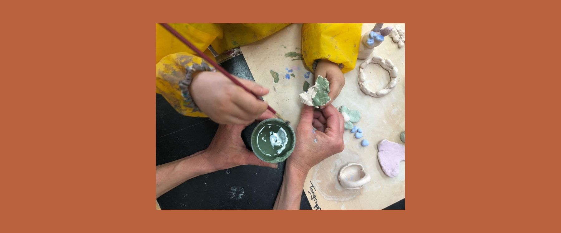 In einem gemeinsamen Projekt trafen sich Kinder und KlientInnen unter fachlicher Begleitung von zwei MitarbeiterInnen über mehrere Wochen hinweg zum Singkreis und Töpfern.