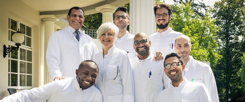Fachärzte, Psychologen, Ergotherapeuten, Verwaltungskräfte, Köche - sie alle und noch viele mehr gehören zum Team der Klinik. Es sind die verschiedensten Professionen, die sich - jede auf ihre Art - mit Ihrer Gesundheit auseinandersetzen. Und das nicht isoliert voneinander, sondern in ständigem Austausch untereinander. Dabei sorgt die abgestimmte medizinische und therapeutische Versorgung auch dafür, eventuell vorliegende Begleiterkrankungen einordnen und behandeln zu können. Rund um die Uhr sind die Mitarbeiterinnen und Mitarbeiter für Sie da.