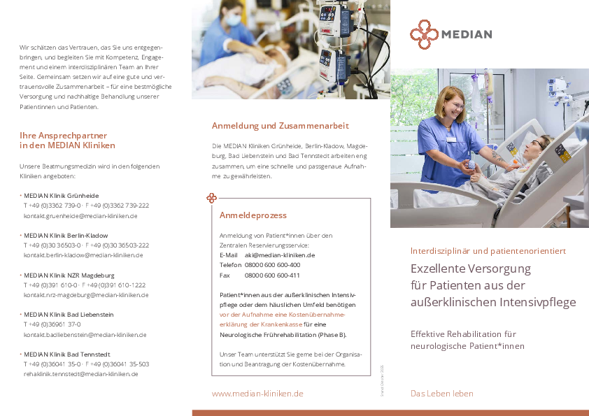 Schon während der Entwöhnung von der Beatmung werden unsere Patientinnen und Patienten durch ein interdisziplinäres Team rehabilitativ behandelt. Hierdurch wird die optimale Förderung zum frühestmöglichen Zeitpunkt gewährleistet. Zu dieser Förderung gehört auch die protokollbasierte Entwöhnung von der Trachealkanüle. Die Entwöhnung von der Beatmung und der Trachealkanüle wird durch ein individualisiertes Sekretmanagement gefördert. Nicht von der Beatmung oder der Trachealkanüle entwöhnbare Pateinten werden so behandelt, dass sie ein langfristig möglichst geringes Komplikationsrisiko haben. Übergeordnetes Ziel der neurologischen Früherehabilitation beatmeter und trachealkanülierter Patientinnen und Patinten ist die bestmögliche Lebensqualität und Teilhabe.