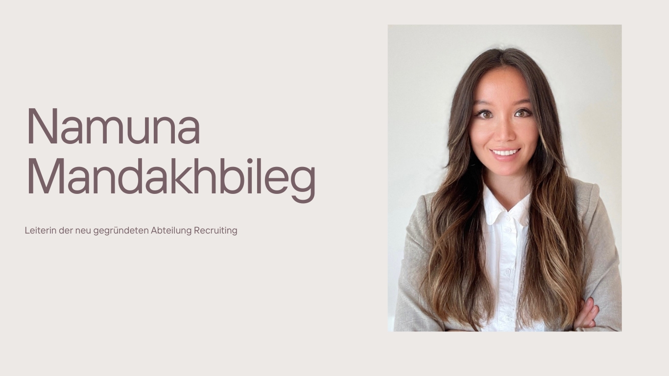 Namuna Mandakhbileg studierte Germanistik an der Universität Heidelberg. Danach war sie in verschiedenen Positionen bei der Hays AG, einem international agierenden RecruitingUnternehmen, tätig, zuletzt als Senior Abteilungsleiterin.