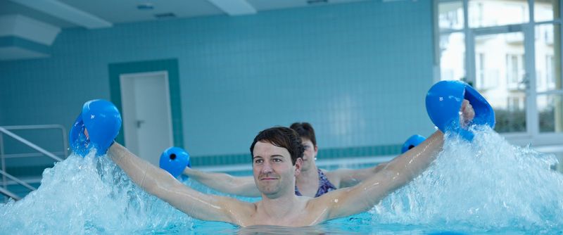 Schwimmen ist eine gute Übung in einer Sporttherapie, da Menschen im Wasser nur ein Zehntel ihres tatsächlichen Körpergewichtes tragen und somit die Gelenke entlastet werden.