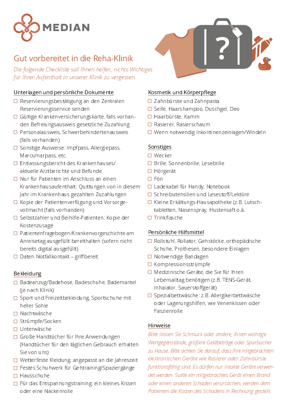 Ihre Checkliste für einen entspannten Start in der Rehaklinik.