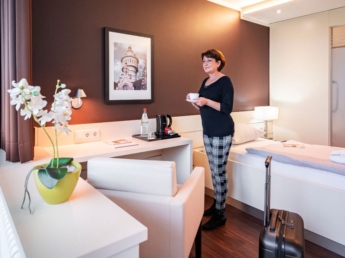Unsere zertifizierte Fachklinik bietet hochwertige medizinische Behandlung in den Bereichen Orthopädie, Kardiologie und Psychosomatik. Dank der engen interdisziplinären Vernetzung der Abteilungen und der multiprofessionellen Zusammenarbeit von Ärzten und Therapeutinnen sowie Therapeuten garantieren wir eine individuelle und umfassende Betreuung. Menschliche Wärme, persönliche Zuwendung und fachliche Kompetenz machen Ihren Aufenthalt bei uns zu einer besonderen Erfahrung. Wir unterstützen Patientinnen und Patienten auf dem Weg zu mehr Mobilität, Selbstständigkeit und Teilhabe im Alltag und Beruf. Dazu bieten wir verschiedene Formen der Rehabilitation an: