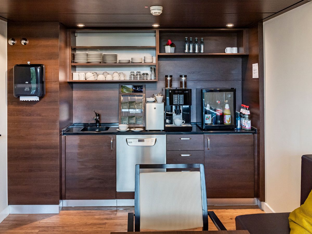 - Wasserkocher mit Auswahl an Tee und Instantkaffee