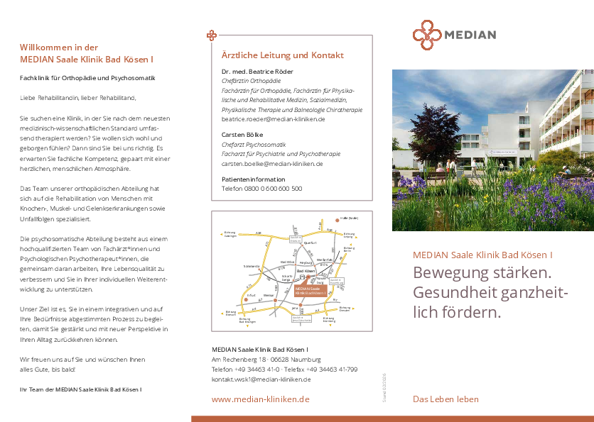 MEDIAN Saale Klinik Bad Kösen I – Persönlich betreut. Kompetent behandelt. Verlässlich für Sie da.