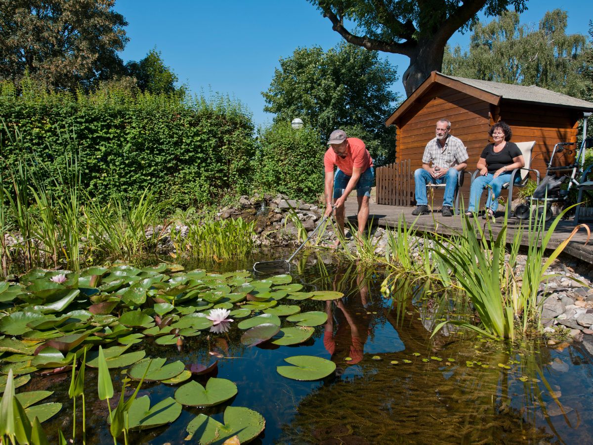 Das Außengelände von Haus Grefrath ist so gestaltet, dass es von den Bewohnern zur Entspannung und Erholung genutzt werden kann.